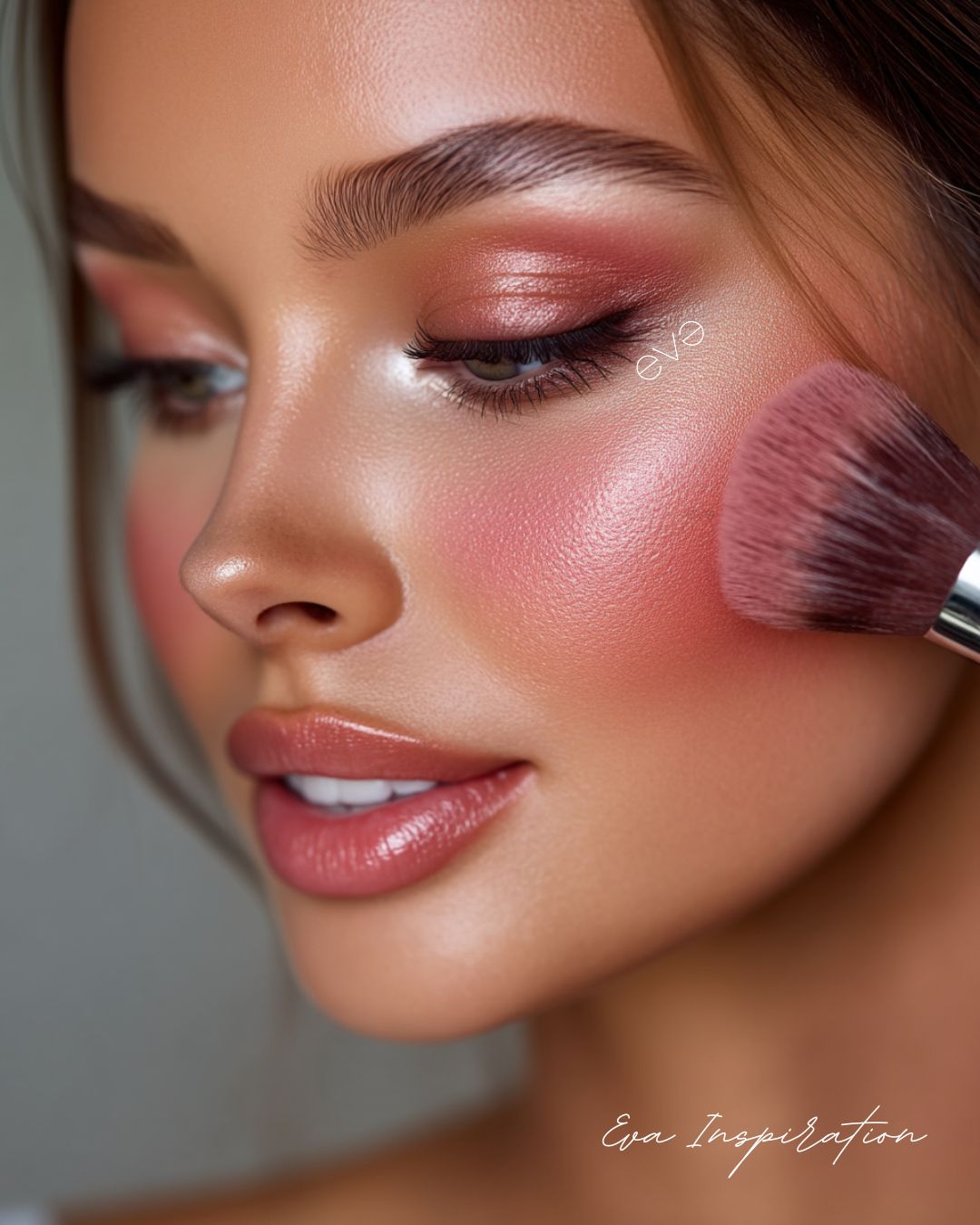 Duo féminin, glow caramel, paupières cuivrées ou argentées clean girl. Inspiration Eva Inspiration.