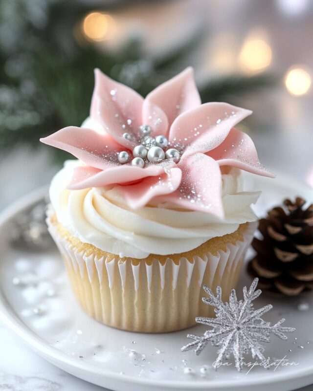 Cupcake poinsettia rose givré