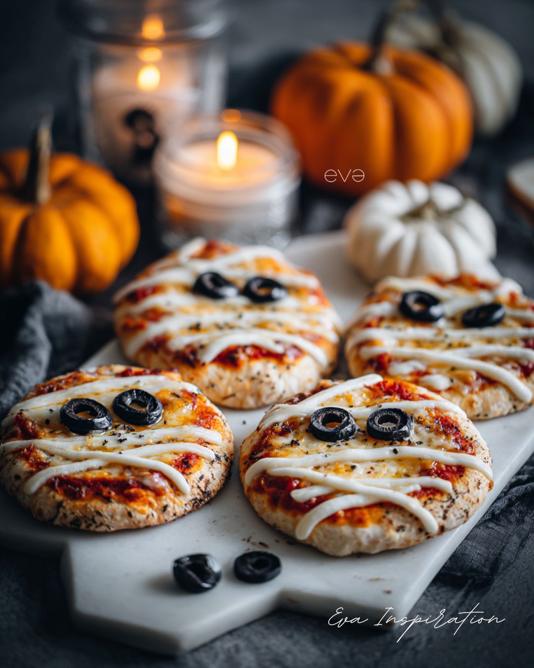mini pizza halloween momie yeux idee snack entree