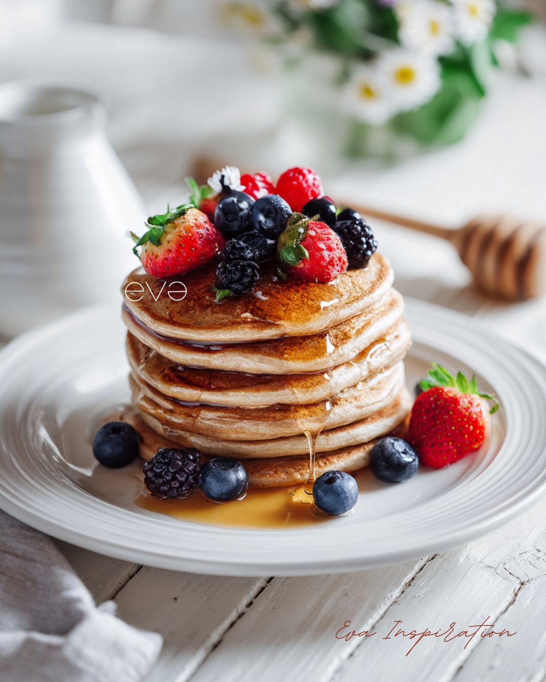 - Repos 10 minutes (l’avoine boit légèrement → pancakes plus moelleux).