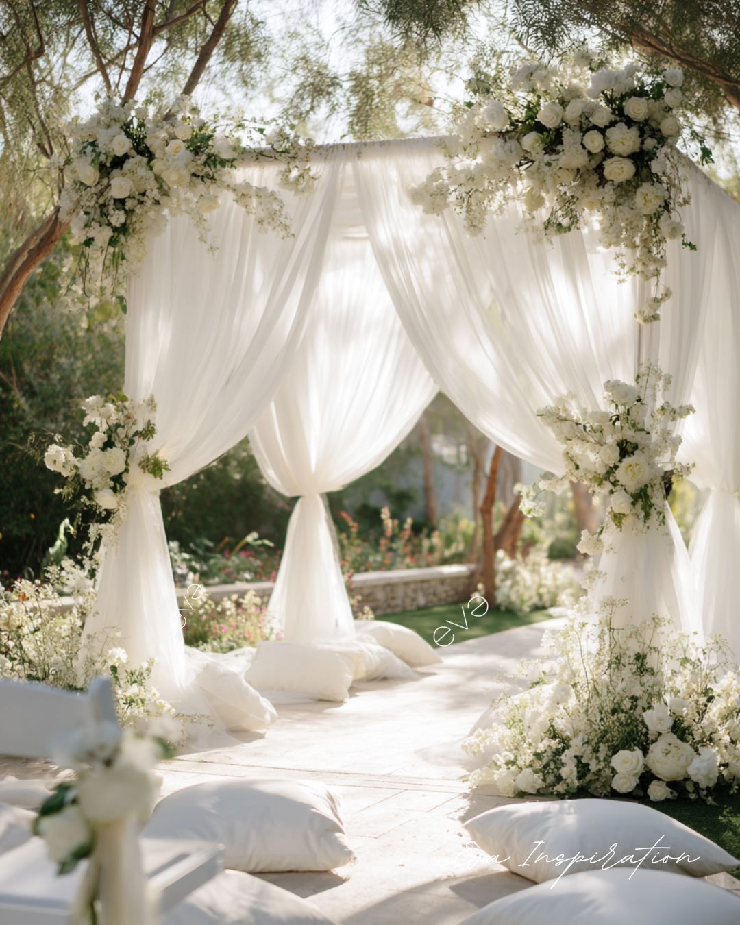 - Décorer l’espace – arche, tapis, fleurs, rubans, coussins.